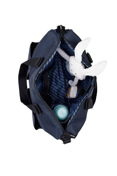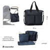 Poręczna i pojemna (max. ładowność 2,5 kg) torba do wózka holenderskiej marki Easywalker w stylu unisex. Idealna na wszystkie niezbędne rzeczy dziecka i rodzica. To klasyczny, elegancki dodatek dla mamy lub taty – dzięki uchwytom i detalom ze skóry ekologicznej prezentuje się bardzo stylowo. Można nosić ją w ręku, przewieszoną przez ramię lub jako plecak, posiada bowiem odczepiany ergonomiczny pasek, który można mocować w odpowiedniej pozycji. Pasek ten umożliwia również zawieszenie torby na ramie wózka. Komora główna jest zapinana na suwak, wewnątrz niej znajduje się kilka kieszonek, w tym dwie z gumowanymi brzegami, ułatwiającymi utrzymanie pionie butelek z mlekiem lub napojami. Z łatwością posegregujesz w niej pieluszki, chusteczki, ubranka i inne artykuły pierwszej potrzeby. W komplecie jest także poręczna, składana mata do przewijania oraz wyjmowany organizer (można go też używać osobno) – oba akcesoria w grafitowo-czarne ukośne paski z eleganckim czarnym obszyciem. Na zewnątrz w tylnej ściance torby znajduje się nieduża kieszonka na suwak, w której pomieścisz drobiazgi, np. klucze czy telefon. Dwie otwarte kieszenie z przodu będą doskonałym miejscem na pluszaka, śliniak czy inną rzecz, którą potrzebujesz mieć pod ręką. Torba wykonana jest z miękkiej, wodoodpornej, łatwej do czyszczenia i ekologicznej tkaniny. Matę oraz organizer można prać w pralce w łagodnym trybie, w 30°C. Kolorystycznie odpowiada kolekcji wózków Harvey³ Premium, jest jednak uniwersalna i pasuje do wszystkich wózków i spacerówek Easywalker oraz do większości spacerówek i wózków innych marek.