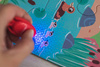 Zestaw magicznych puzzli Las francuskiej marki JANOD składa się z 24 elementów, po ułożeniu tworzących uroczy, barwny, dość sporych rozmiarów (65 x 50 cm) i bogaty w szczegóły obrazek, przedstawiający leśną polanę, pełną zwierząt. To jednak nie wszystko. Dzięki dołączonej lampce ze światłem UV (ultrafiolet) obrazek robi się czarny, a wybrane elementy na nim... świecą! Co więcej – ilustracja się zmienia: pojawiają się gwiazdy i księżyc, niektóre zwierzątka idą spać, inne zaś się budzą, na drzewach połyskują świetliki itp.