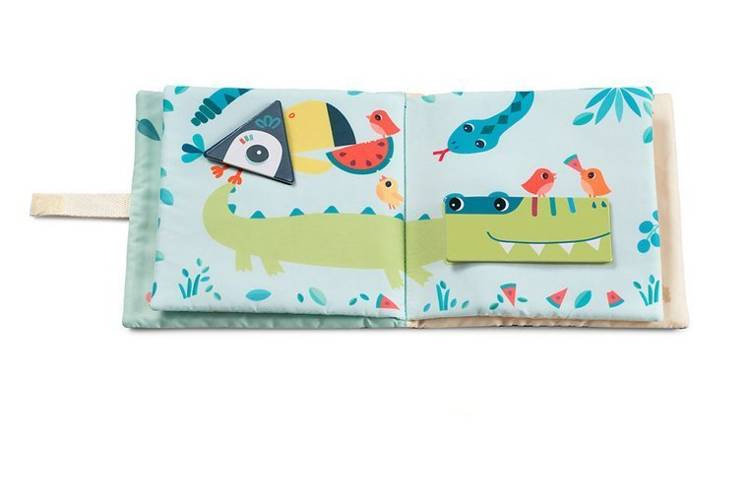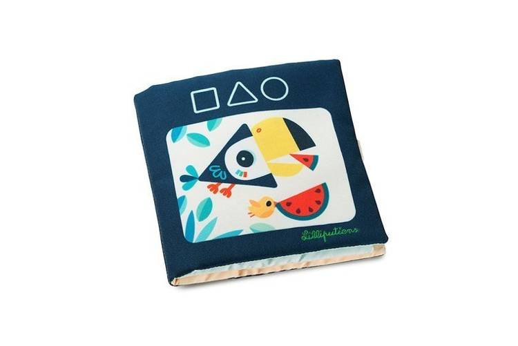 Książeczka do nauki kształtów belgijskiej marki Lilliputiens to idealna pierwsza pomoc naukowa dla maluszka. Na okładce znajduje Tukan Pablo z trójkątnym kawałkiem arbuza w dziobie. Kolejne strony przedstawiają inne zwierzątka z różnych kolekcji marki, m.in. Krówkę Rosalie, Kokoszkę Paulette, Krokodyla Anatola czy Lisiczkę Alice, do których należy dopasować odpowiednie głowy we właściwym kształcie geometrycznym (kontury są zaznaczone). Głowy zwierząt (w sumie jest ich 6) wykonane są z solidnego kartonu i przyczepia się je do ilustracji na rzepy. Na tylnej okładce z kolei znajduje się kieszonka, w których można owe odczepiane elementy przechowywać. Kolorowe obrazki ciekawią malucha, łatwo zapadają w pamięć i zachęcają do nauki kształtów. Książeczka jest zapinana na rzep, perfekcyjnie wykończona, z dbałością o każdy szczegół i w pełni bezpieczna dla dziecka.