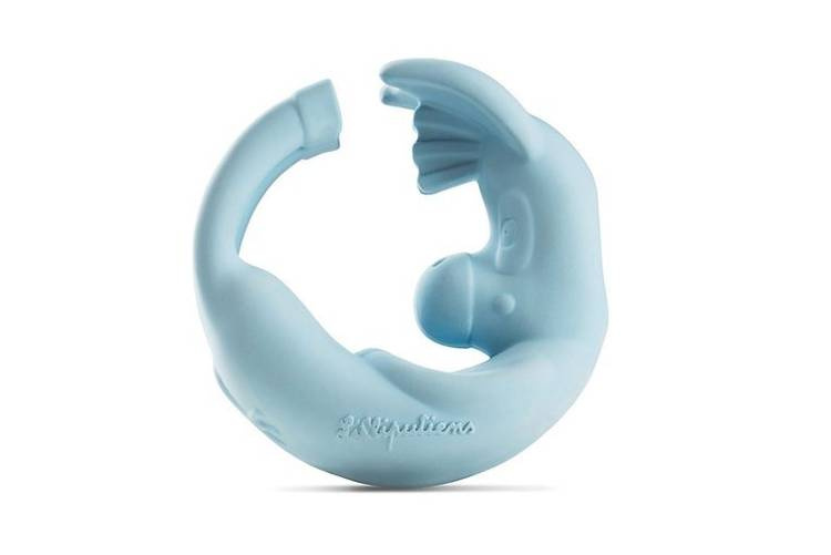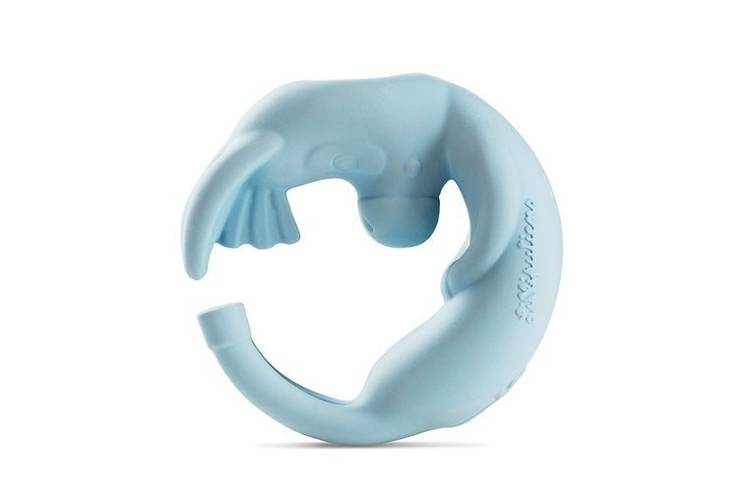 Grzechotka gryzak Osiołek Ignace belgijskiej marki Lilliputiens to niebanalna aktywizująca zabawka dla niemowląt. Jest miękka, wykonana z naturalnego kauczuku i barwiona roślinnymi pigmentami na piękny jasnoniebieski kolor. Osiołek Ignace ma kształt obręczy, którą łatwo chwycić w małe rączki, a do tego może się toczyć jak piłka. W główce znajduje się dzwoneczek, który wydaje przyjemny dźwięk przy poruszaniu grzechotką. Zabawka może również z powodzeniem pełnić rolę gryzaka. Rozwija małą motorykę (chwytania, potrząsanie, toczenie), aktywizuje zmysł słuchu (dzwoni), wzroku i dotyku, a także pozwala dostrzegać związki przyczynowo-skutkowe i przynosi ulgę w trudnym okresie ząbkowania.