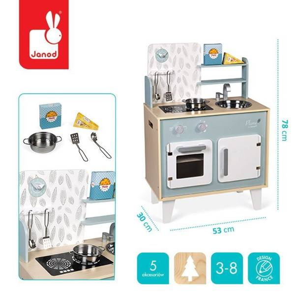 Akcesoria do zabawy w gotowanie marki JANOD wiernie odwzorowują swoje „dorosłe” odpowiedniki, wielkością dostosowane są jednak do dziecięcych rączek. Są bezpieczne i idealnie nadają się do uwielbianej przez dzieci „zabawy w dom”. Zostały starannie wykonane, mają przyjemny, ciekawy design, który rozwija poczucie estetyki, a ponadto rozwijają kreatywność i motorykę małej dłoni. Odtwarzanie sytuacji znanych z obserwacji pozytywnie wpływa również na wszechstronny rozwój dziecka, w tym kontakt z rówieśnikami i rozwiązywanie problemów.