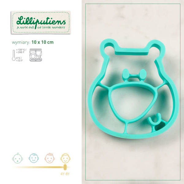 Forma do smażenia jajek z kolekcji Niedźwiadek Cesar belgijskiej marki Lilliputiens to idealne pierwsze narzędzie kuchenne małego miłośnika gotowania. Ma jasnoniebieski kolor i pozwala przyrządzić jajko sadzone w kształcie pyszczka Niedźwiadka Cesara – wystarczy umieścić żółtko w miejscu nosa, a białko – w pozostałej przestrzeni. Foremka została wykonana z trwałego, bezpiecznego i higienicznego silikonu spożywczego, można ją myć w zmywarce i jest odporna na temperatury w przedziale od 0 do 120°C. Ładna, poręczna i funkcjonalna – zachęca dziecko do zabawy w naśladowanie dorosłych i podejmowanie kulinarnych wyzwań, dzięki czemu uczy się samodzielności.