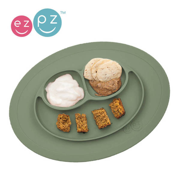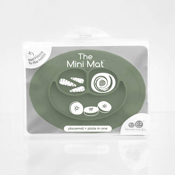 Mini Mat amerykańskiej marki EZPZ (czyt. izipizi) to nieduża, poręczna podkładka i trójdzielny talerzyk w jednym, stworzony z najbezpieczniejszego silikonu. Pasuje do większości blatów krzesełek do karmienia. Dzięki zamykanemu opakowaniu, jest to idealne rozwiązanie na podróż.