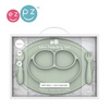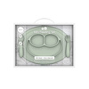 W skład zestawu wchodzą: talerzyk z podkładką Mini Mat oraz komplet sztućców Mini Utensils.