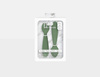 Innowacyjny zestaw zawiera łyżeczkę i widelczyk zaprojektowane przez specjalistę w dziedzinie logopedii i żywienia dzieci, dzięki czemu ich kształt został idealnie dopasowany do ust małego dziecka. Dodatkowo używanie dwóch rodzajów sztućców zwiększa świadomość sensoryczną malucha, wspiera rozwój aparatu mowy i małej motoryki – trenuje chwytanie, nabieranie (łyżka) oraz przekłuwanie (widelec). Główki obu sztućców mają optymalną wielkość, a trzy ząbki widelca są odpowiednio szerokie, dzięki czemu zestaw jest całkowicie bezpieczny dla delikatnych dziąseł maluszka. Miękki materiał chroni wyrzynające się ząbki, a lekkie wygięcie pomaga w nauce domykania warg. Odpowiednio krótkie, dość grube, zaokrąglone i antypoślizgowe uchwyty zostały wyprofilowane tak, by sztućce były łatwe do trzymania w małych rączkach. Dodatkowe wypustki pod spodem uchwytów stabilizują leżące sztućce.