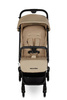 Wózek jest lekki, zwrotny i łatwy do manewrowania. Wyposażony jest w pokryty wysokiej jakości elegancką ekoskórą pałąk i folię przeciwdeszczową. Solidna automatyczna blokada pozwala łatwo przenosić wózek po złożeniu, używając uchwytu lub paska do przewieszenia przez ramię. To doskonały towarzysz rodzinnych podróży, który w razie potrzeby bez problemów zmieści się w bagażniku samochodu czy schowku w samolocie, jako bagaż podręczny (ma wymiary zgodne z wymogami poszczególnych linii lotniczych), a dzięki dołączonej do niego dedykowanej torbie transportowej w kilka chwil zamieni się w lekką i wygodną do przenoszenia czy transportu paczkę.