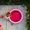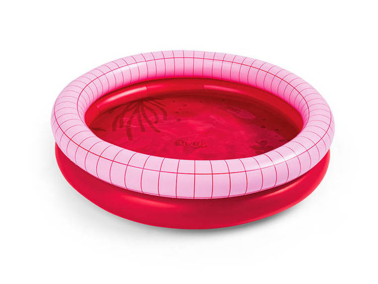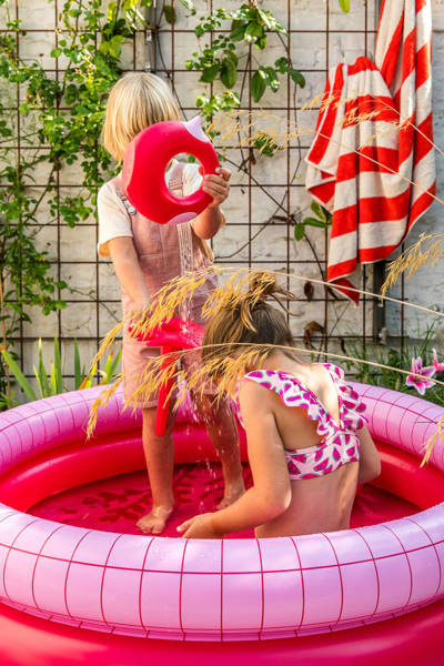 Duży dmuchany basen Dippy belgijskiej marki Quut to praktyczne rozwiązanie, zapewniające dzieciom bezpieczną wodną rozrywkę w ogrodzie lub na tarasie. Wykonany z bardzo wytrzymałego winylu, zachwyca niebanalnym designem i kolorystyką. Po nadmuchaniu pomieści ok. 100 l wody (przy zalecanym 50%-owym napełnieniu). To idealne miejsce do outdoorowych zabaw w wodzie dla maluszków od 2. roku życia (UWAGA: wyłącznie pod opieką dorosłych!), zdobywania nowych doświadczeń i umiejętności. Basen jest stabilny, ma grube brzegi i piękne, intensywne kolory – ciemno- i jasnoróżowy z uroczym wzorem w szeroką kratę w górnej części i grafiką wodorostów na dnie. Wprowadza wakacyjny klimat i zachęca do eksplorowania wodnego środowiska.