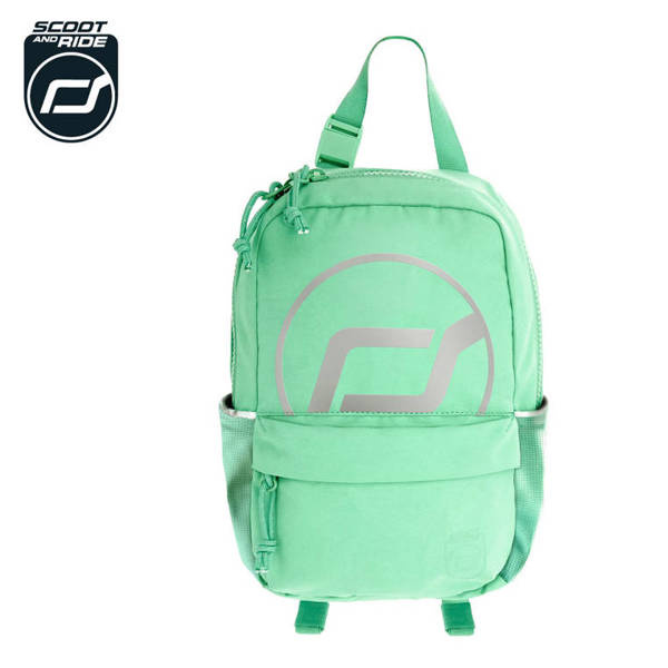 Funkcjonalny, stylowy i ultralekki plecak austriackiej marki Scoot & Ride jest przeznaczony dla dzieci od 1. do 5. roku życia. Ma pojemność całkowitą 9 l, miękko wyściełane, „oddychające” plecy oraz ergonomiczne, szerokie, miękkie ramiączka z regulacją długości i paskiem piersiowym, odciążającym kręgosłup i stabilizującym plecak. W dwóch miejscach wyposażony jest w innowacyjne magnetyczne zapięcie: w pasie piersiowym i przy górnym uchwycie plecaka, dzięki czemu można go przymocować do kierownicy każdej hulajnogi (choć kolorystycznie „zgrany jest” z hulajnogami Highwaykick).