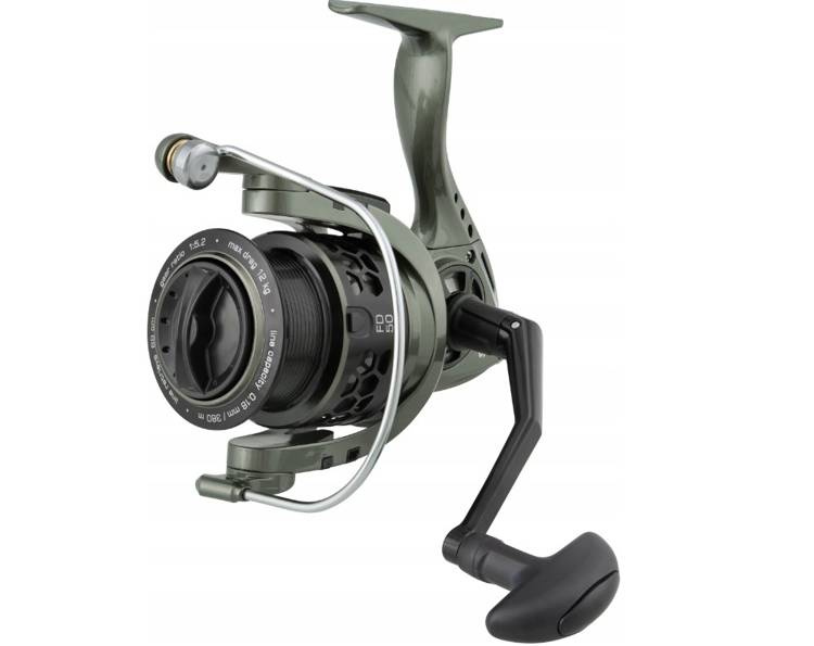 - Szeroka, łożyskowana rolka kabłąka zabezpieczająca przed skręcaniem się żyłki