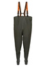 Spodniobuty wykonane z wysokiej jakości wzmocnionego materiału poliestrowego. Dodatkowo wyposażone w kieszonkę na dokumenty i wzmocnienia na kolanach. Kalosze wyposażono w podeszwę z bieżnikiem, co gwarantuje dużą stabilność nawet na śliskim podłożu.