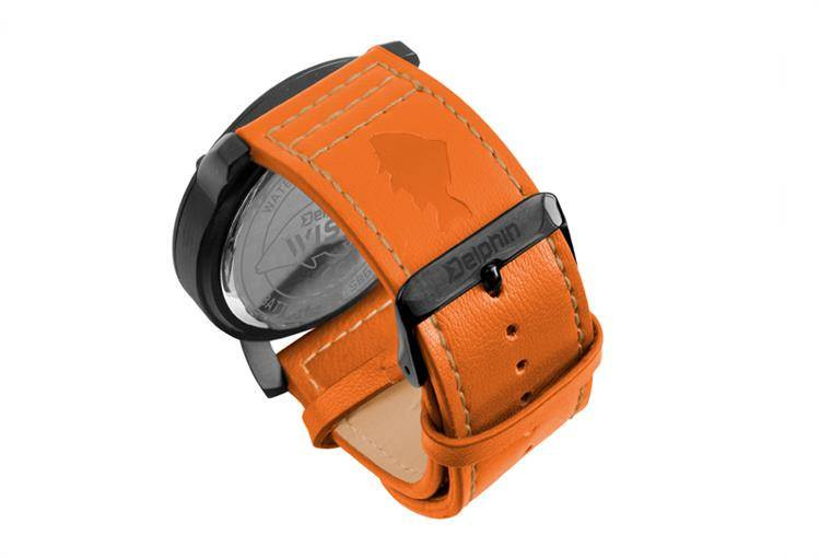 Elegancja, styl i precyzyjnie dopracowane detale. Oto trzy główne czynniki, które idą w parze w zegarku Delphin WISIA. Już przy pierwszym kontakcie przyciągnie Cię wyjątkowy design składający się z brązowych skórzanych pasków i czarnej tarczy z białą grafiką. Oprócz tego nie można jednak nie zauważyć kilku bardzo efektownych detali, które zachwycą każdego wędkarza i zwolennika marki Delphin. Być może najbardziej rzuca się w oczy sylwetka karpia na pasku, a także na spodzie zegarka. Logo Delphin podkreśla wyjątkowy styl tego produktu bezpośrednio na tarczy i metalowej skuwce.