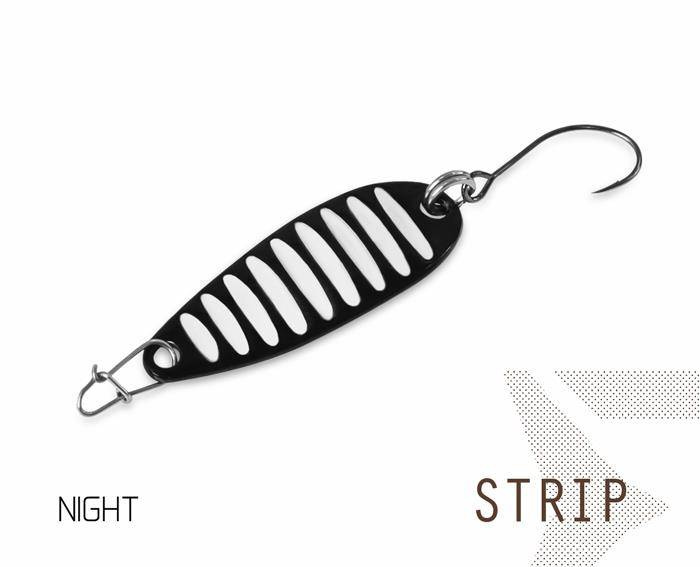 Delphin STRIP to seria mikro wahadłówek przeznaczonych do połowu pstrągów. Ich korpus wykonany jest ze stopu cynku. Wyposażone są w wysokiej jakości pojedynczy haczyk z serii BOMB! Posiadają również HardLure i FASTLOCK MICRO SNAP, aby nie stracić żadnej ryby. Przynęty te są również bardzo skuteczne podczas łowienia małych ryb drapieżnych na jeziorach lub rzekach. Są one bardzo kuszące i atrakcyjne dla drapieżników, co widać na pierwszy rzut oka. Przynęty STRIP mają paski w różnych kolorach, co doskonale imituje żywą przynętę.