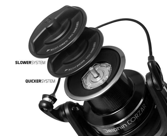 CORZAR należy do rodziny kołowrotków karpiowych o dużej pojemności od marki Delphin, która wyróżnia się wyszukanym designem. Ich podstawą jest masywna stopka przechodząca w korpus, wykonana z bardzo mocnego i wytrzymałego tworzywa sztucznego. Wewnątrz kołowrotka znajduje się ślimak, który w połączeniu z łożyskami kulkowymi (6 + 1) zapewnia bezproblemową płynną pracę i długą żywotność. CORZAR jest wyposażony w tak zwany hamulec „power”, który ma siłę hamowania do 25 kg i który występuje w kołowrotkach w obu rozmiarach. Tak zwany „system Quicker” pozwala na jego całkowite dociągnięcie przy jednym obrocie, natomiast w systemie „Slower” regulacja hamulca podczas połowu ryby jest dużo płynniejsza i wolniejsza. Wraz z systemem anti-reverse, kołowrotek CORZAR oferuje szeroki zakres opcji regulacji podczas walki z rybą. Zaletą kołowrotka jest również blokada zarzucania, która zapobiega niezamierzonemu przekręceniu się rotora przy przechyleniu kabłąka w określonym położeniu i ewentualnemu przerwaniu żyłki podczas rzutu. Metalowa szpula może pomieścić wystarczająco dużą ilość żyłki, co czyni go wszechstronnym kołowrotkiem na wszystkie rodzajów wód. Oprócz dwóch hamulców, w opakowaniu znajdują się również dwie zapasowe śruby do mocowania korbki.