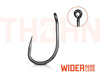 THORN Wider BarbLESS jest specyficzny dzięki legendarnemu szeroko rozwartemu kształtowi. Jest to haczyk charakteryzujący się szerszym łukiem i prostym ramieniem. Dzięki tym parametrom jest bardzo uniwersalnym i niezawodnym haczykiem, który można wykorzystać do różnych przynęt. W tym przypadku haczyk nie posiada zadzioru, co znacznie ułatwia przebicie pyska karpia.