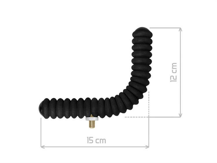 EVA SmallBEND to uchwyt na wędki w kształcie litery L. Jego powierzchnia wykonana jest z czarnej pianki EVA o nieregularnym, pofalowanym kształcie. To właśnie ta powierzchnia chroni wędkę przed uszkodzeniem, a także utrzymuje ją na miejscu podczas połowów oraz znacznie zmniejsza możliwość upadku wędki na ziemię. Uchwyt posiada uniwersalny gwint, dzięki czemu jest kompatybilny ze wszystkimi standardowo produkowanymi stojakami, podpórkami czy innymi podporami.