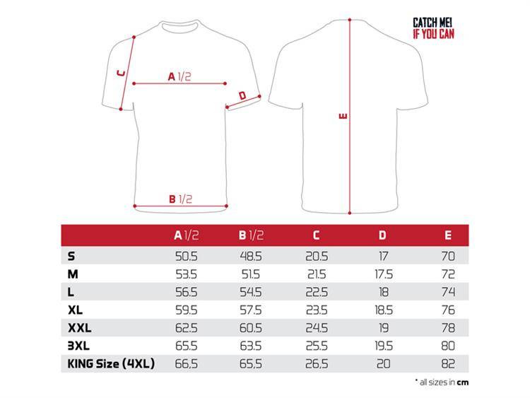 Sama koszulka jest wysokiej jakości, podobnie jak zastosowany kolorowy nadruk. Oferujemy je w szerokiej gamie rozmiarów, od S do KING SIZE (odpowiednik 4 + XL, który w większości krajów nazywa się XXXXXL). Model żartobliwie nazwany KING SIZE ubierze nawet wędkarz o wadze 135 kg+.