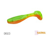 Od początku projektowaliśmy KARMA jako nietypowy model klasycznego produktu. Naszym celem było stworzenie wszechstronnej przynęty, ale zrobienie tego na swój własny sposób. Pierwszą rzeczą, jaką można zauważyć, jest niezwykły stosunek ogona do ciała. Większy ogon powoduje nietypowy ruch przynęty, kiedy ogonek porusza się, a tułów delikatnie przetacza się z jednej strony na drugą, imitując zranioną ofiarę. Taki ruch niezwykle dobrze przyciąga ryby i daje nowe możliwości prezentacji przynęty. Pomiędzy tułowiem a ogonem znajdują się trzy nacięcia dodające bardziej naturalnego wyglądu, a sam tułów jest ząbkowany na brzuchu i tylnej części. Ten rodzaj powierzchni zwiększa wibracje w wodzie i z powodu nacięć; zawsze widać, gdzie włożyć haczyk i gdzie opuszcza ciało. Przednia część przynęty posiada nacięcie, aby lepiej dopasować główkę jigową.