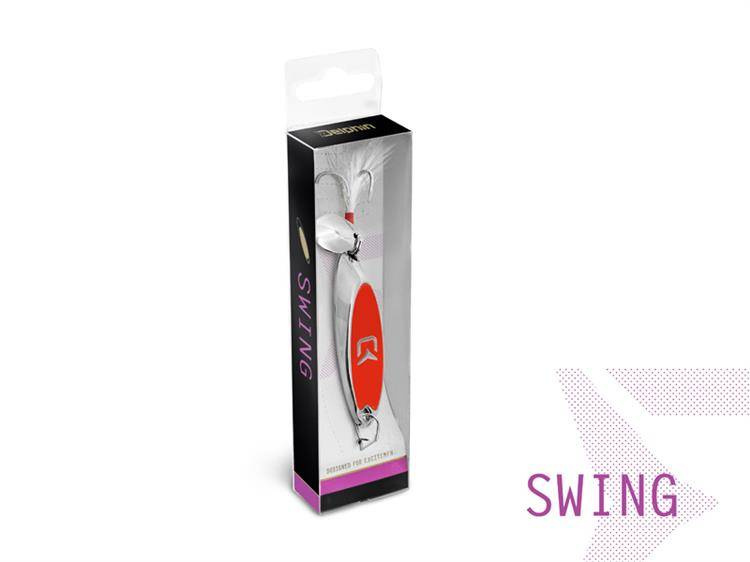 Błystka z serii Delphin SWING to idealna przynęta do połowu większych drapieżników. Sama nazwa sugeruje ruch kołyszący odpowiedni do łowienia tuż pod powierzchnią – technika idealna dla każdego, kto ma ochotę na łowienie boleni i szczupaków. Korpus wykonany ze stopu cynku. Aby przynęta była jeszcze bardziej atrakcyjna, między korpus a haczyk wkładamy płetwę. Błystka ma wysokiej jakości solidny potrójny haczyk ze specjalną technologią, aby łatwiej przebić się przez twarde pyski drapieżników. Posiada również FAST LOCK SNAP dla szybszej wymiany przynęty. Przynęta ta jest odpowiednia również na mniejsze drapieżniki, zwłaszcza na jeziorach lub rzekach. Błystka SWING ma płaski i wydłużony kształt ciała, dzięki czemu skutecznie sprowokuje każdego drapieżnika.
