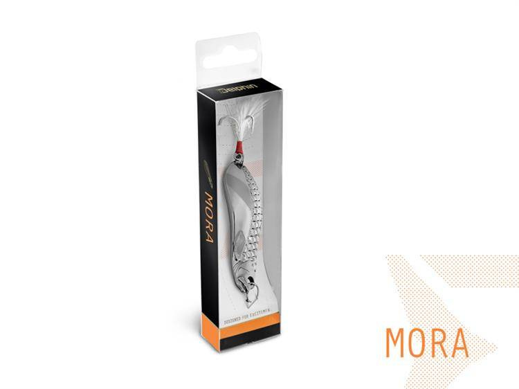 Błystka z serii Delphin MORA to idealna przynęta do połowu większych drapieżników, takich jak szczupaki, sandacze, bolenie czy sumy. Najlepiej sprawdza się w głębokich wodach, korpus ze stopu cynku łatwo tonie dzięki swojej wadze. Błystka ma wysokiej jakości solidny potrójny haczyk ze specjalną technologią, aby łatwiej przebić się przez twarde pyski drapieżników. Posiada również karabińczyk FAST LOCK SNAP dla szybszej wymiany przynęty. MORA to bardzo atrakcyjna przynęta o wklęsłym kształcie korpusu, imitująca żywą rybę. Taki ruch jest w stanie sprowokować każdego drapieżnika w pobliżu.