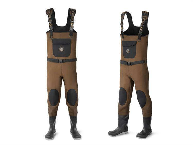 Podczas wędkowania w zimie, jedną z rzeczy, o której z pewnością należy pamiętać, jest zapewnienie ciepła. Wodery neoprenowe Delphin ORAVA są po to, aby o to zadbać. Oferują elegancki design i wysokiej jakości wykonanie, gdzie każdy szew cechuje się precyzją, aby zapobiec przeciekaniu. Dzięki brązowemu kolorowi, śluz i inne plamy nie będą tak widoczne. Z przodu znajduje się neoprenowa kieszeń do przechowywania drobnych przedmiotów - jak na przykład karta wędkarska. Nie musisz się również martwić o kolana, ponieważ wodery są wzmocnione podwójną warstwą neoprenu w tych częściach. Regulowane paski na ramiona wyposażone są w neoprenową wyściółkę dla lepszego komfortu podczas Twoich niekiedy całodziennych wypraw wędkarskich. Pod szelkami znajdują się dwa plastikowe pierścienie, do których możesz przymocować na przykład metrówkę lub szczypce. W pakiecie znajduje się pas do brodzenia, który zapobiega przedostawaniu się wody do wnętrza woderów w razie poślizgnięcia lub upadku. Gumowe kalosze mają trwałe i stabilne podeszwy, które wytrzymają najtrudniejsze warunki. Są wyłożone neoprenowymi wkładkami dla lepszej ochrony przed zimnem.
