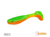 Od początku projektowaliśmy KARMA jako nietypowy model klasycznego produktu. Naszym celem było stworzenie wszechstronnej przynęty, ale zrobienie tego na swój własny sposób. Pierwszą rzeczą, jaką można zauważyć, jest niezwykły stosunek ogona do ciała. Większy ogon powoduje nietypowy ruch przynęty, kiedy ogonek porusza się, a tułów delikatnie przetacza się z jednej strony na drugą, imitując zranioną ofiarę. Taki ruch niezwykle dobrze przyciąga ryby i daje nowe możliwości prezentacji przynęty. Pomiędzy tułowiem a ogonem znajdują się trzy nacięcia dodające bardziej naturalnego wyglądu, a sam tułów jest ząbkowany na brzuchu i tylnej części. Ten rodzaj powierzchni zwiększa wibracje w wodzie i z powodu nacięć; zawsze widać, gdzie włożyć haczyk i gdzie opuszcza ciało. Przednia część przynęty posiada nacięcie, aby lepiej dopasować główkę jigową.