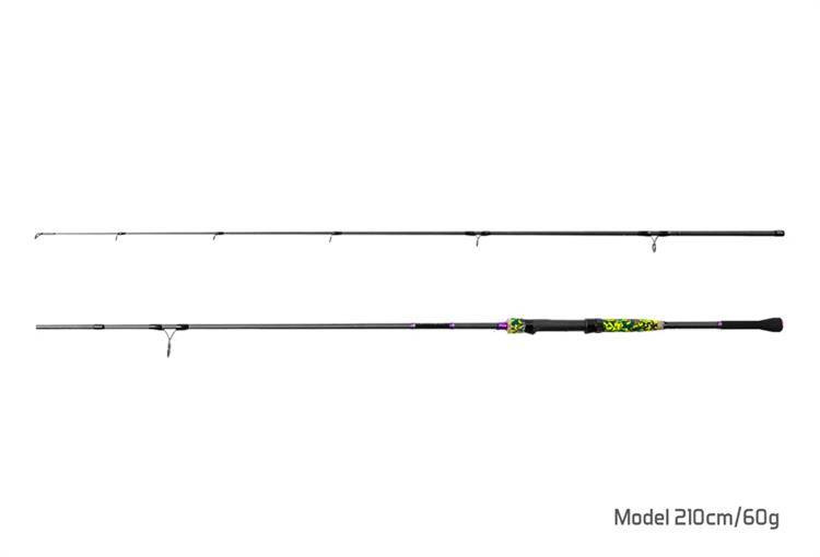 Zahipnotyzuj wszystkie wielkie drapieżniki! Wędki dla wszystkich, którzy łamią wszelkie ustalone konwencje. Na pierwszy rzut oka zaważymy uchwyt, który jest wykonany z kolorowego kamuflażu przy użyciu kolorów jasnozielonego, brązowego i zielonego. Powyżej tego „hipnotyzującego” uchwytu znajdziemy subtelne szczegóły korka, a w dolnej trzeciej części wędki znajdziemy fioletowe, gwintowane dekoracje. Matowy szary blank i czarne przelotki sprawiają, że wędka jest eleganckim towarzyszem wody, a nowocześnie skomponowany dolnik przyciąga wzrok. Półparaboliczna akcja na sztywniejszym półfabrykacie sprawia, że model ten jest bardzo skuteczną bronią na drapieżniki, które można wygodnie podnieść na długości wędki, a nawet pokonać duże szczupaki lub mniejsze sumy.