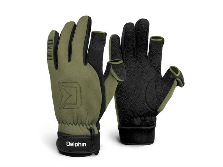 Rękawiczki neoprenowe Delphin RWR Free zapewnią ciepło w dłonie nawet w najchłodniejsze dni. Dokładne wykończenie rękawic przenosi wędkarstwo zimowe na zupełnie inny poziom. Dużym plusem jest gumowana powierzchnia na dłoni, która wyposażona jest w antypoślizgową, warstwę z logo Delphin. Zdejmowane elementy na końcu kciuka i palca wskazującego, z możliwością mocowania na rzep, ułatwiają montaż drobnych akcesoriów i przyspieszą czas ich montażu. Aby zapobiec przedostawaniu się chłodu lub niechcianej wody do rękawic, wokół nadgarstka jest element wykonany z wszytej gumy, który można dodatkowo regulować za pomocą paska ściągającego z rzepem. Połączenie kolorów zielonego i czarnego sprawia, że rękawice RWR Free są idealnym towarzyszem zarówno podczas wędkowania, jak i innych zajęć rekreacyjnych.