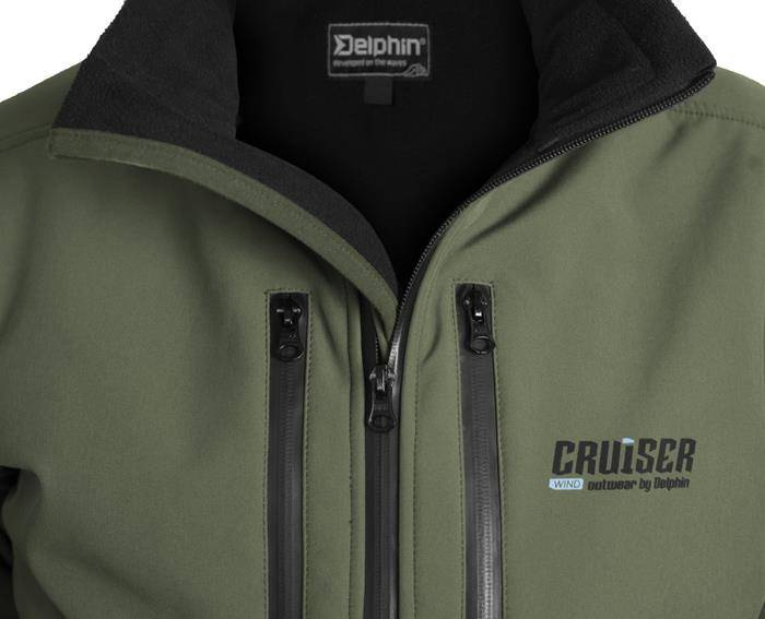Delikatna kurtka softshellowa CRUISER Wind stanie się Twoim wiernym towarzyszem w chłodniejsze i wietrzne dni nad wodą. Pomiędzy zewnętrzną i wewnętrzną warstwą kurtki znajduje się wiatroodporna membrana o oddychalności 1000 g / m2 / 24h. Pionowy kołnierz jest zapinany na zamek na wysokości podbródka. Główny zamek i kieszenie na zapinane na zamek na wysokości piersi są wodoodporne. Boczne kieszenie nie zawierają zamków. Rękawy i dół kurtki są opatrzone elastycznym ściągacz. Wewnętrzna część kurtki wykonana jest z wygodnego polaru w kolorze czarnym. Część zewnętrzna składa się z kombinacji kolorów zielono-czarnych. Dzięki wiatroodpornej membranie kurtka jest wiatroodporna, ale nie wodoodporna! Wiatrówka Delphin CRUISER jest wygodna, bardzo łatwa w noszeniu, świetnie wygląda i jest lekko elastyczna. Softshell zewnętrzny zapewnia bardzo dobrą izolację termiczną. Kurtka nadaje się do całodziennych zajęć w chłodniejsze, suche i względnie stabilne warunki pogodowe. Aby przedłużyć jego właściwości, po każdym praniu kurtkę należy impregnować softshellem. Podczas prania zalecamy stosowanie specjalnego detergentu do odzieży funkcjonalnej, pranie w max. 40 ° C, nie myć jej a w razie potrzeby, użyć impregnatu, aby przywrócić hydrofobowość (DWR) materiału zewnętrznego Skład materiału: 94% poliester, 6% elastan.