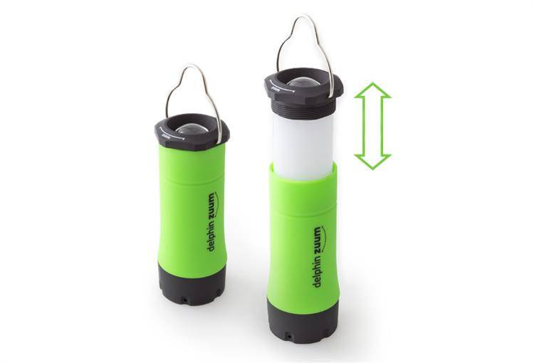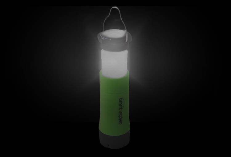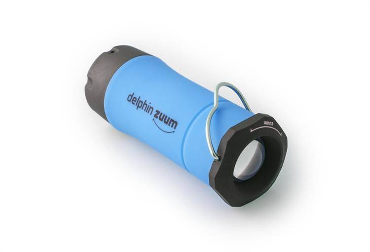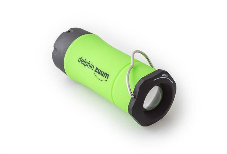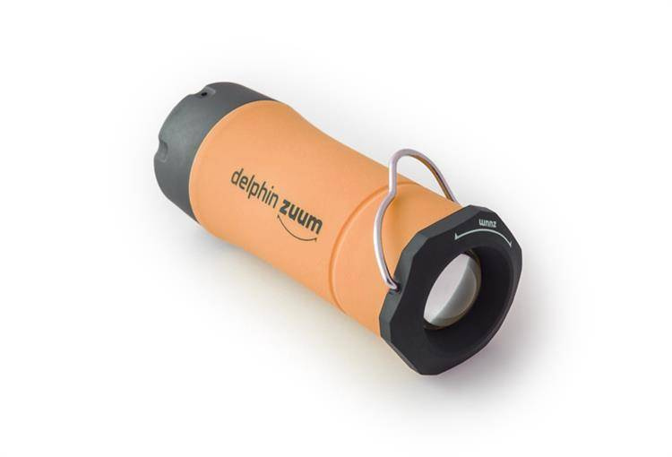 Podręczna latarka -lampka, która stanie się niezbędna podczas każdego wypadu nad wodę. Dzięki małym rozmiarom Delphin ZUUM jest bardzo poręczna a jej wielofunkcyjność sprawi, że stanie się niezastąpionym towarzyszem w warunkach słabego oświetlenia. Można jej używać jak klasycznej latarki, z wiązką światła świecącą prosto z obracającej się głowicy, a po przekręceniu górnej części i wysunięciu wewnętrznej, również jako lampki wolnostojącej lub wiszącej (dzięki wbudowanemu haczykowi). Ale to nie koniec jej możliwości. Lampka LED ma trzy tryby świecenia: światło jasne, światło przyciemnione i stroboskop. Wielofunkcyjna lampka ZUMM od firmy Delphin może zmieniać się z klasycznej podręcznej latarki w oświetlenie wiszące, oświetlenie namiotu, światło pozycyjne.. Lampka ZUUM jest wykonana z trwałego tworzywa w trzech kolorach do wyboru: zielona, pomarańczowa i niebieska.