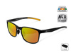 Ekspresyjne okulary z lustrzanymi, pomarańczowo-żółtymi szkłami. W tym kolorze są również dopasowane pokryte gumą zauszniki, co czyni ten model idealnym partnerem dla aktywnego pokolenia.