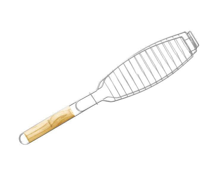 Ruszt do grillowania przeznaczony do przygotowania ryby. Rybę należy umieścić pomiędzy dwie rozkładane części rusztu i można grillować. Ruszt należy obracać. Uchwyt jest drewniany, części stalowe są pokryte warstwą antykorozyjną. Dzięki możliwości dwóch pozycji, można na nim grillować różne typy ryb a nawet mięso.