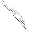 Seria TX4 to feedery o szybkiej akcji płynnie przechodzącej w półparabolę, zbudowane na mocnych a zarazem lekkich blankach. Przez wiele miesięcy testowaliśmy te kije na różnych zawodniczych łowiskach w kraju i jesteśmy przekonani, że oddajemy w Wasze ręce wędki, które sprawią Wam dużo przyjemności z wędkowania. Bardzo często spotykamy się nad wodą z sytuacją, gdy musimy po ryby sięgać na spore odległości lub używać bardzo ciężkich koszyczków, aby stabilnie utrzymać zestaw na dnie łowiska. Projektując tą serię postawiliśmy sobie za cel oddanie w Wasze ręce wędzisk, którymi będziecie mogli to bezproblemowo osiągnąć, nie tracąc przyjemności z wędkowania. Kije świetnie się ładują i pozwalają oddawać precyzyjne rzuty na bardzo duże odległości. Taką charakterystykę wędzisk osiągnęliśmy dzięki zastosowaniu całkowicie nowych blanków, które wyposażyliśmy w specjalnie wydłużony i wyprofilowany dolnik, poprawiający chwyt podczas rzutów i przelotki typu „K”. Maksymalnie odsunęliśmy też od kołowrotka przelotkę startową. Seria składa się z trzech modeli. Kij 3,6m o cw 80g będzie doskonałym wyborem łowiąc na dystansie około 60m lub w rzece o niezbyt dużym uciągu. Kij 3,9m o cw 110g to wędzisko, które pozwoli powtarzalnie i celnie obławiać 75m, a poza tym niejednokrotnie uratuje nas z opresji, kiedy będziemy musieli sięgnąć po ryby stojące w rzekach czy jeziorach za podwodnymi skarpami czy za pasem roślinności przybrzeżnej rosnącej daleko w nurcie. Wersja 4,2m o cw 130g to już zawodnik do zadań specjalnych, na którym dystans 90m nie zrobi wrażenia. Da nam też możliwość wędkowania w rzekach na sporych uciągach, gdzie będziemy musieli zastosować bardzo ciężkie koszyczki. W komplecie trzy węglowe szczytówki, 3,60 m: 1oz, 1,5 oz, 2 oz; 3,90 i 4,20 m: 1,5 oz, 2 oz i 3 oz.