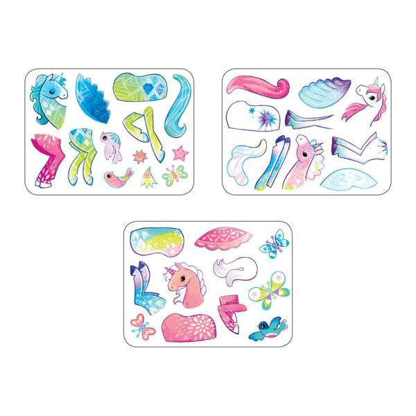 Zestaw magnesów do konstruowania Magiczne jednorożce amerykańskiej marki MUDPUPPY to wyjątkowo kreatywna zabawka dla dzieci od 4 roku życia. Na 2 dwustronnych magnetycznych (cynowych) planszach znajdują się magiczne tła, na których można tworzyć kolorowe jednorożce z wybranych magnetycznych elementów. Podczas zabawy da się nie tylko kreować coraz to nowe stworzenia, ale też snuć o nich niezliczone opowieści. Zestaw zawiera ponad 30 magnesów. Autorką ilustracji jest brytyjska rysowniczka Katie Wood. Zabawka ma poręczny format, sprawdza się w domu i w podróży. Zapakowana jest w estetyczne, metalowe pudełko. Doskonale nadaje się na prezent.
