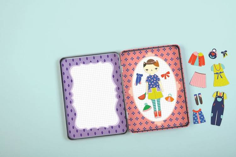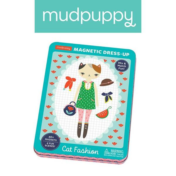Zestaw magnesów do tworzenia postaci Kocie modelki amerykańskiej marki MUDPUPPY to wyjątkowo kreatywna zabawka dla dzieci od 4 roku życia. Na 2 dwustronnych magnetycznych (cynowych) kartach znajdują się tła z ramkami, na których można umieszczać magnesy (ponad 40), tworząc różnorodne stylizacje dla dwóch kotek-modelek – do wyboru są elementy strojów, nakrycia głowy, torebki czy buty. Autorką ilustracji jest mieszkająca w Australii artystka Flora Waycott. Zabawka ma poręczny format, sprawdza się w domu i w podróży. Zapakowana jest w estetyczne, metalowe pudełko. Doskonale nadaje się na prezent.