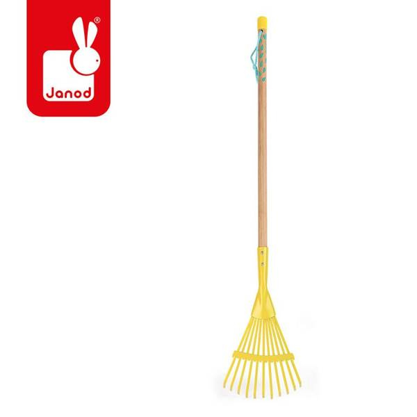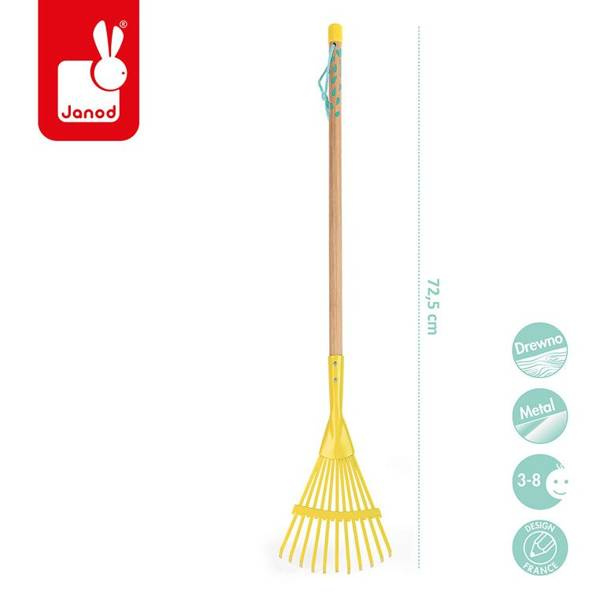 Duże, metalowe grabie do liści z serii Mały ogrodnik francuskiej marki JANOD to idealna zabawka dla dziecka, lubiącego aktywność w ogrodzie i naśladowanie dorosłych. Grabie mają żółtą szeroką podstawę i długą drewnianą rączkę, dostosowaną do wzrostu i możliwości małego dziecka. Lekkie i poręczne, zachęcają do włączenia się w obowiązki dorosłych. Są trwałe i estetycznie wykonane. Idealnie nadają się na prezent.