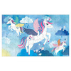 Puzzle soczewkowe Magiczne jednorożce amerykańskiej marki MUDPUPPY nadają układaniu puzzli nowy wymiar – na samym złożeniu obrazka zabawa się bowiem nie kończy. Układanka składa się z 75 elementów, które po ułożeniu tworzą obrazek o wymiarach 45 x 26 cm, przedstawiający trzy jednorożce na tęczowym niebie. Dzięki specjalnej technice druku, zwanej drukiem soczewkowym, ilustracja porusza się i „ożywa” w zależności od tego, pod jakim kątem się na nią patrzy – zmienia się nie tylko tło (posiadające efekt głębi 3D) i nasycenie kolorów, a na niebie pojawia się tęcza, ale też bohaterowie, którzy np. otwierają oczy czy poruszają skrzydłami.
