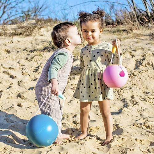 Wiaderko wielofunkcyjne Ballo belgijskiej marki Quut przyciąga wzrok niebanalnym designem i oryginalną kolorystyką. Jest poręczne, lekkie i łatwe do utrzymania przez dziecko. To wyjątkowo sprytne rozwiązanie np. do przenoszenia wody. Ma kształt kuli o pojemności 3,6 l i szerokie gumowe wykończenie przy otworze, co zapobiega wylewaniu się lub wysypywaniu zawartości, nawet podczas upadku. Na sznurku, który przechodzi przez środek wiaderka, zapewniając jego stabilność, znajduje się obły uchwyt z tworzywa dla wygodnego noszenia. Wiaderka można używać w dowolny sposób, jaki podpowie dziecku wyobraźnia. Gwarantuje inteligentną aktywność na świeżym powietrzu, i to przez cały rok. Sprawdza się bowiem nie tylko do zabaw w piasku, ale także w wodzie (nawet w wannie), śniegu czy ogrodzie.