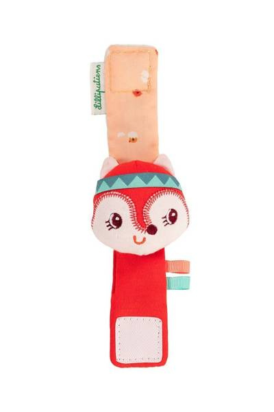 Pluszowa grzechotka na zwijanej bransoletce Lisiczka Alice belgijskiej marki Lilliputiens to niebanalna aktywizująca zabawka dla niemowląt. Miękka, kolorowa, uszyta z bawełny, bransoletka jest zapinana na rzep i można ją założyć na rączkę lub nóżkę maluszka. Szeleści przy pocieraniu. Zdobi ją główka - grzechotka uroczej rudej Lisiczki Alice ze stymulującymi sensorycznie uszkami i tasiemkami. Zabawka rozwija małą motorykę (potrząsanie), aktywizuje zmysł słuchu (szeleści, grzechocze), wzroku i dotyku.