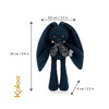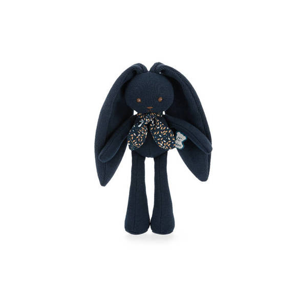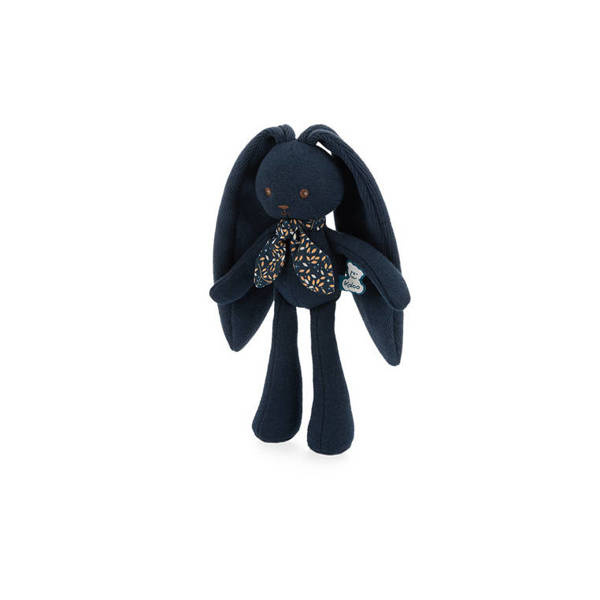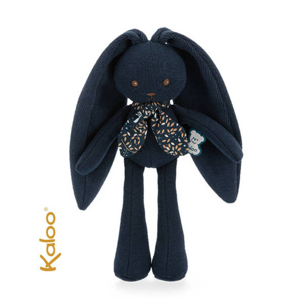 Urocza przytulanka Królik francuskiej marki KALOO to idealna zabawka dla Twojego dziecka, bezpieczna już od pierwszych dni życia. Jest niezwykle miękka, piękna i perfekcyjnie wykończona. Poręcznych rozmiarów wyjątkowo przyjemny w dotyku królik w kolorze granatowym ma długie nogi i bardzo długie uszy, za które można go przywiązać do pałąka w wózku lub szczebelków łóżeczka, a pod szyją – zawiązaną na supeł chusteczkę ze wzorem w drobne listki. Będzie świetnym kompanem maluszka – do tulenia, usypiania, uspokajania, zabierania na spacery i wyprawy. Ma haftowane oczy i buzię.