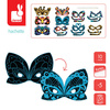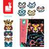 Zestaw kreatywny Do zdrapywania Zwierzęce okulary i maski francuskiej marki JANOD zawiera 5 masek i 5 okularów (każde do złożenia z trzech elementów) z solidnego kartonu. Maski są czarne, jedynie z kolorowymi konturami elementów, które ukazują się stopniowo w efekcie zdrapywania wierzchniej warstwy. Ich kształty inspirowane są zwierzętami, m.in. żyrafą, sową, panterą, ćmą, czy nietoperzem. Do zestawu dołączony jest plastikowy patyczek do zdrapywania. Zdrapywanie to dla dziecka długie godziny angażującej i jednocześnie uspokajającej, wyciszającej zabawy, a gotowe maski można nosić jako przebranie lub zrobić z nich wspaniałą dekorację dziecięcego pokoju. Zestaw zaprojektowano we Francji we współpracy z francuską grupą mediową i wydawniczą Hachette. Zapakowany jest w stylowe kartonowe pudełko. Idealnie nadaje się na prezent.