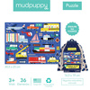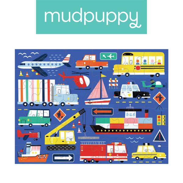 Zestaw puzzli podróżnych Transport amerykańskiej marki MUDPUPPY składa się z 36 poręcznych dla dziecka elementów. Zapakowane są one w wygodny do transportu, ściągany solidnym sznurkiem jasny woreczek z szarym wzorem puzzli. Ułożony obrazek przedstawia różne pojazdy, statki i samoloty, a także znaki i inne elementy infrastruktury drogowej. Rozmiarami – 30,5 x 23 cm – dostosowany jest do wymiarów stolika w samolocie, pociągu lub samochodzie. Ładny design i przyjazne barwy dodatkowo zachęcają malca do zabawy. Puzzle idealnie nadają się na prezent.