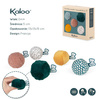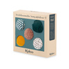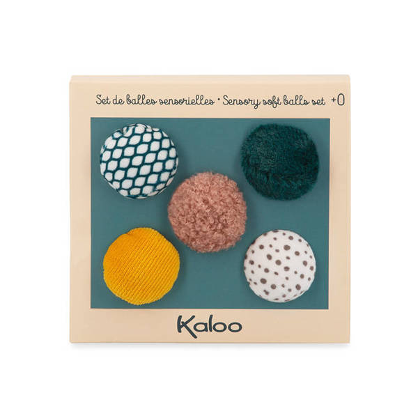 Komplet pięciu miękkich piłeczek sensorycznych z kolekcji Stimuli francuskiej marki KALOO to idealna, wielofunkcyjna zabawka rozwojowa dla Twojego dziecka, bezpieczna już od pierwszych dni życia. Piłeczki są piękne i perfekcyjnie wykończone. Mają poręczny rozmiar (średnica 5 cm), idealny do nauki chwytu. Ponadto zostały wykonane każda z innej tkaniny, dzięki czemu stymulują zmysł wzroku i dotyku. W zestawie znajdują się następujące piłeczki: pluszowa gładka biała we wzór niebieskiej siateczki, ciemnozielona z delikatnego futerka z dłuższym włosiem, pudrowo-różowa z pętelkowego futerka, musztardowa ze sztruksu oraz aksamitna biała w zabawne czarne kropeczki.