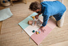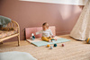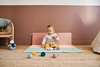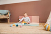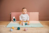 Zabawka zapakowana w estetyczne pudrowe pudełko, które może pełnić funkcję sortera – w jego froncie zostały bowiem wstępnie wycięte okrągłe otwory, przez które można wkładać i wyciągać piłeczki. Zabawa taka to doskonały trening koordynacji ręka-oko.