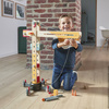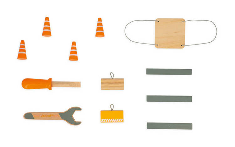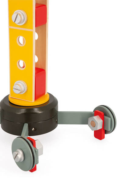 Duży drewniany dźwig do samodzielnego składania z narzędziami francuskiej marki JANOD to idealny prezent dla małego majsterkowicza. Zestaw składa się z elementów do zbudowania urządzenia, w tym np. śrubek, kółek oraz kilku akcesoriów do zabawy dźwigiem, m.in. belek czy pakunków do przenoszenia, pachołków ostrzegawczych i palety na linach oraz śrubokręta i klucza – narzędzi, niezbędnych przy tworzeniu konstrukcji. Zabawka wspomaga rozwój dziecka na wielu płaszczyznach: rozwija zdolności manualne, precyzję ruchów, cierpliwość, koncentrację, stymuluje wyobraźnię i zachęca do tworzenia historii oraz odgrywania sytuacji, znanych z obserwacji dorosłych. Gotowy dźwig ma aż 74 cm wysokości i kółka wykończone są gumą, dzięki czemu nie rysują one podłogi w domu.