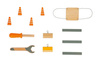 liczba elementów: 1 dżwig + 4 pachołki + 2 narzędzia + 6 elementów do przenoszenia