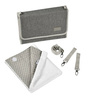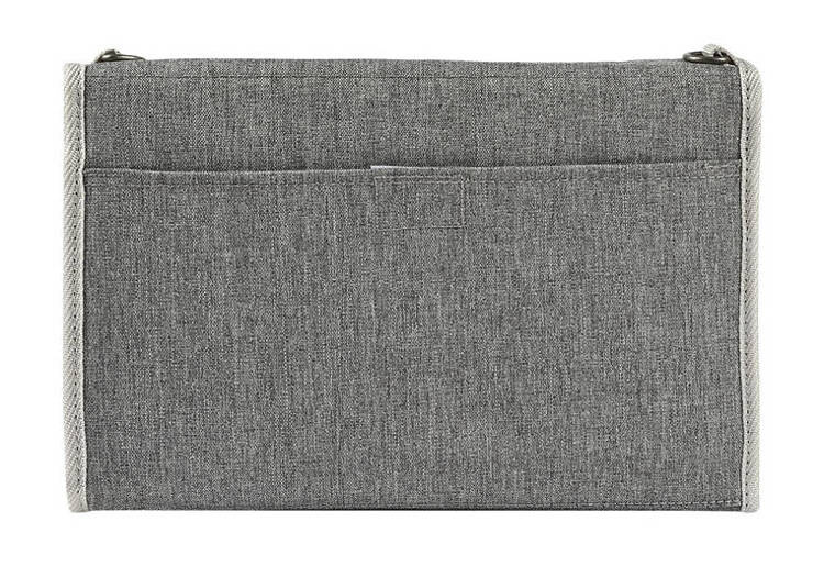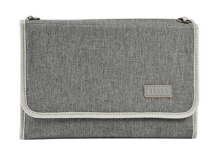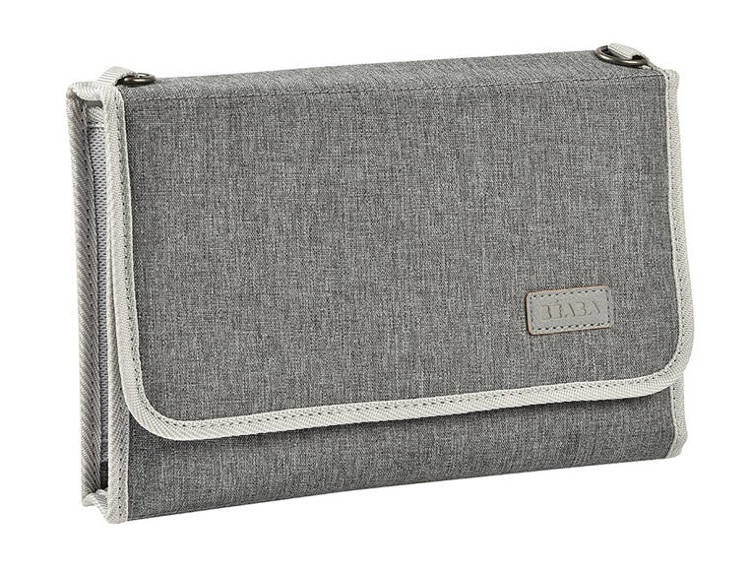 Kompaktowy podróżny przewijak z etui na akcesoria do pielęgnacji niemowląt francuskiej marki BEABA, w stylowym szarym melanżowym kolorze z jasnoszarymi detalami i dodatkami. Pomieści wszystko, co niezbędne do zadbania o higienę maluszka podczas spaceru czy niedalekiej wycieczki – w zestawie posiada dwustronną (po jednej gładką, po drugiej frotte) miękką matę do przewijania o wymiarach 29 x 49 cm, a ponadto ma trzy kieszonki – dwie wewnętrzne z siatki mesh, zapinane na suwak, idealne np. na mokre chusteczki, pieluchy czy drobne produkty pielęgnacyjne oraz jedną zewnętrzną na rzep, np. na rzeczy rodziców (klucze, telefon). Przewijak jest składany do poręcznych rozmiarów, z klapką zapinaną na rzep. Może być noszony w ręku lub w razie potrzeby przewieszony przez ramię czy zamocowany do ramy wózka – zarówno pasek na ramię, jak i zaczepy (2 szt.) znajdują się w zestawie. Całość została wykonana z najwyższej jakości naturalnych materiałów. Przewijak można czyścić wilgotną ściereczką, a miękką matę można prać w pralce w 30°C.