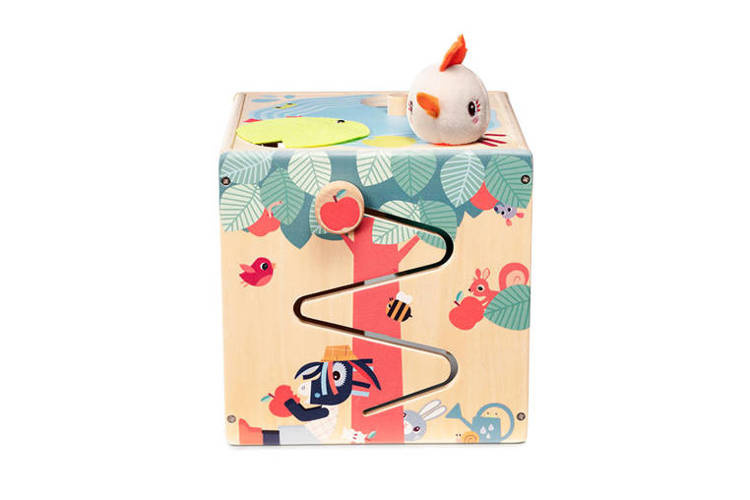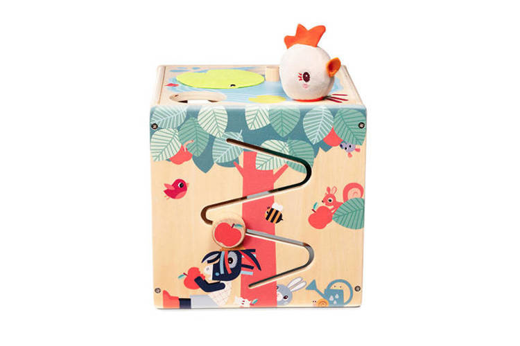 Drewniana kostka aktywizująca Farma belgijskiej marki Lilliputiens to niebanalne wielofunkcyjne źródło rozrywki i nauki dla ciekawskich maluszków. Kostka ma otwarty dół, a na każdej z pozostałych 5 ścian znajdują się różne rodzaje zabaw i funkcji: