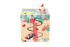 W zestawie znajduje się także miękka, tekstylna Kokoszka Paulette z ukrytym wewnątrz dzwoneczkiem, którą można przekładać przez każdy z otworów oraz wykorzystywać do tworzenia historii o codziennym życiu i przygodach na farmie. Kostka jest solidnie wykonana i bezpieczna. Pomalowana bezpiecznymi farbami na bazie wody. Zaskakuje i pobudza dziecięcą wyobraźnię. Rozwija koordynację ręka-oko oraz małą motorykę (chwytanie, otwieranie, zamykanie, przesuwanie, przeciąganie, wkładanie, wyjmowanie), aktywizuje zmysł słuchu (dzwonienie), dotyku (różne materiały i faktury) i wzroku (lusterko), a dzięki postaci kokoszki – zachęca do snucia opowieści.