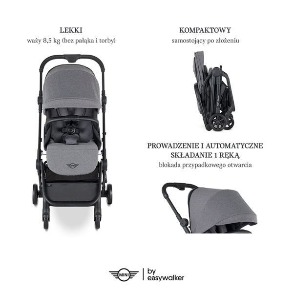 EMT10002KR MINI by Easywalker Buggy TURN Kompaktowy wózek spacerowy z obrotowym siedziskiem 360° Soho Grey