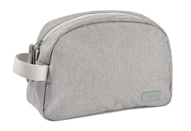Poręczna kosmetyczka podróżna na akcesoria do pielęgnacji niemowląt francuskiej marki BEABA. Zapinana na suwak, z szerokim uchwytem na jednym z boków do wygodnego przenoszenia oraz do powieszenia w łazience lub przy toaletce. Oprócz stosunkowo pojemnej (24 x 17 cm) kieszeni głównej, wyposażona w dwie kieszonki wewnętrzne, ułatwiające segregację akcesoriów. Pomieści nie tylko niezbędne środki pielęgnacyjne, od maści po wilgotne chusteczki, cążki czy aspirator do nosa, ale również zapas pieluszek na zmianę czy ukochany gryzak maluszka, które to rzeczy warto mieć pod ręką podczas każdego spaceru. Materiał kosmetyczki jest wodoodporny i łatwy do czyszczenia (np. gąbką). Kosmetyczka może służyć dziecku przez wiele lat, również kiedy będzie starsze. Sprawdzi się np. podczas wyjazdów na wakacje czy nocowania u przyjaciół. Utrzymana jest w ponadczasowej uniwersalnej kolorystyce: szary melanż z jasnoszarym suwakiem i rączką.